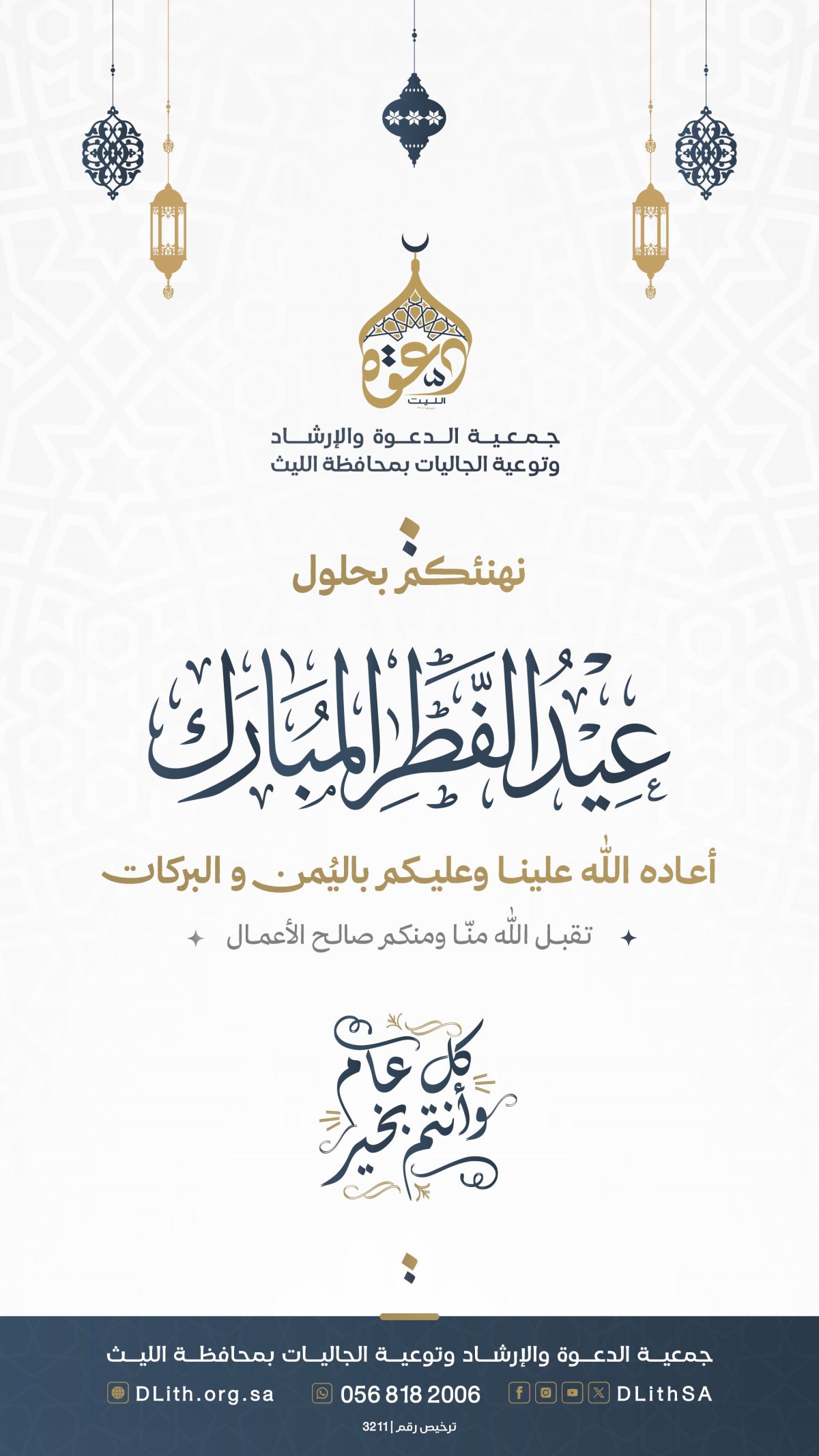 الحمدللـه وحـده والـصلاة والسلام على مـن لا نبي بعده وبعـد، ففي يوم الثلاثـاء 1445/5/7هـ قَمـت بز يـارَة جمعيـة الدعـوة بمحافظَـة الليث فسـرني مـا سَـمعته من الأخَـوة المشـايخ عليها مـن جهـود مبارَكـة تتمثـل بإقَامـة الـدرَوس العلميـة ، والكْلمـات الإرَشـادية ، وتعليـم الجاليـات الإسَلاميـة ، ودعـوة غيـر المسـلمين منهـم وإننـي أَبارَك هـذه الجهـود ، وأَحث إخَوانـي مبارَكة جهودهم ومساعدتهم مادياًً ومعنوياًً بارَك الله في الجهود ، وبالله التوفيق.